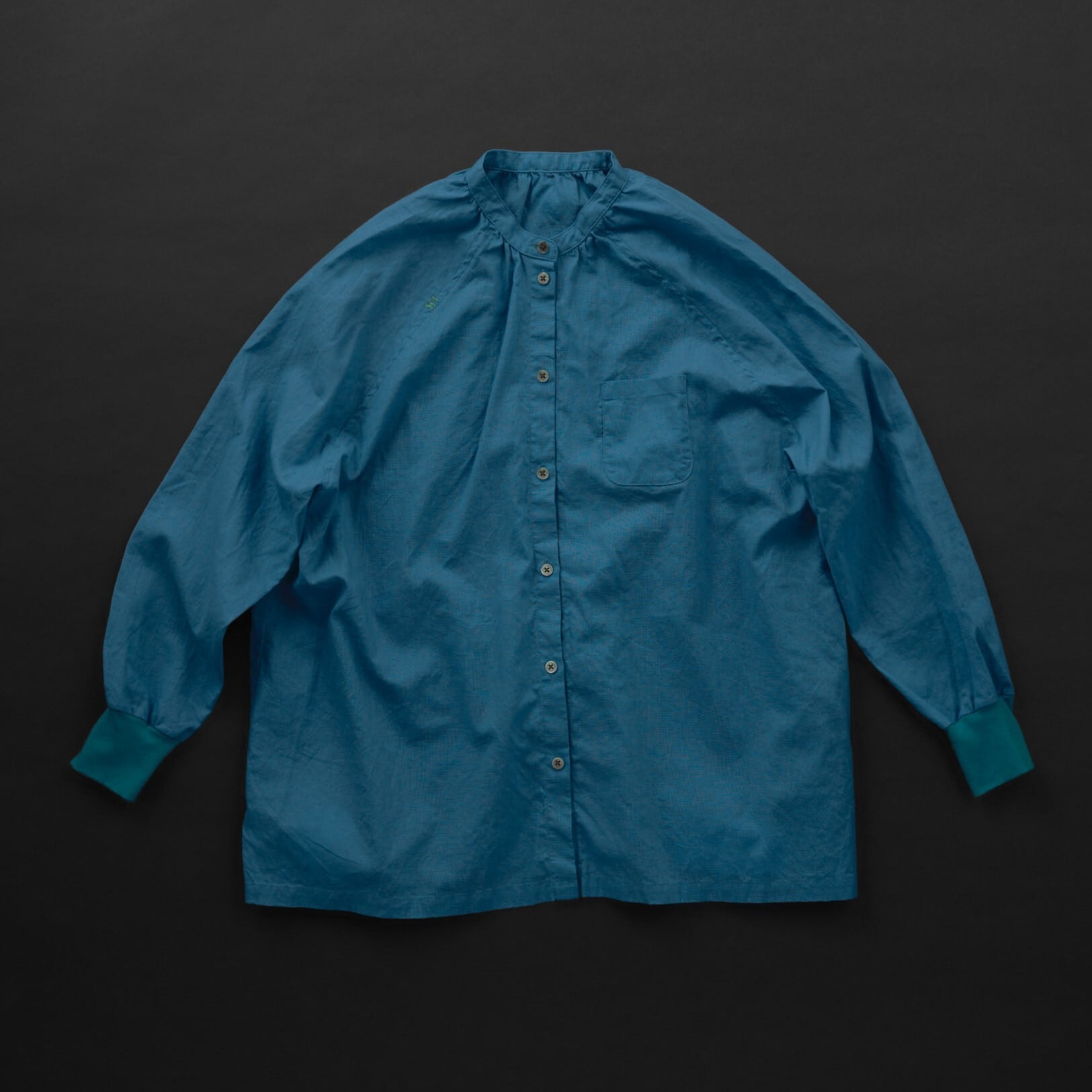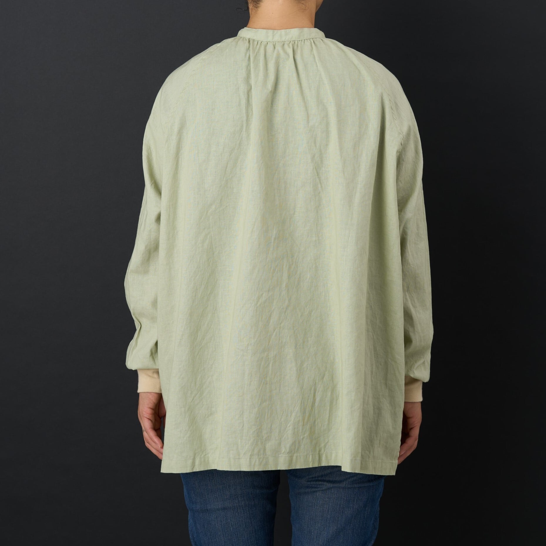 20S綿麻生地で衿ぐりギャザー・ラグラン袖のシャツをつくりました。 ゆったりしたAラインのシャツです。