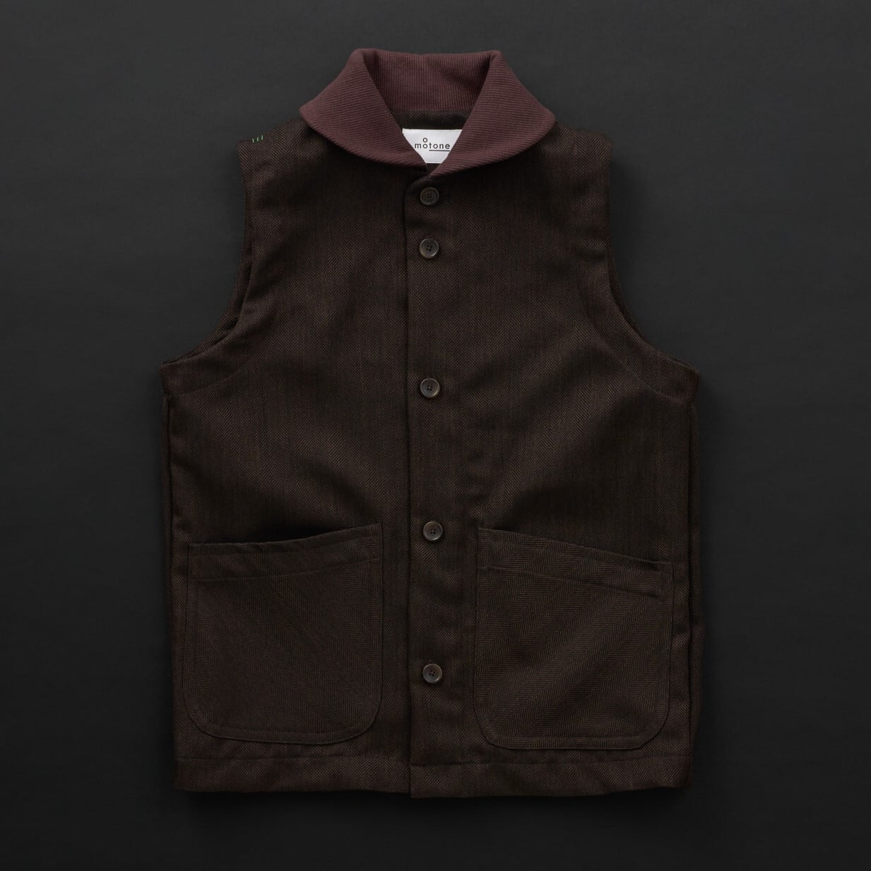 モートンで大人気のジャケット、ランバージャケットのベスト型です。パッチポケットはバイアスにしてアクセントにしました。