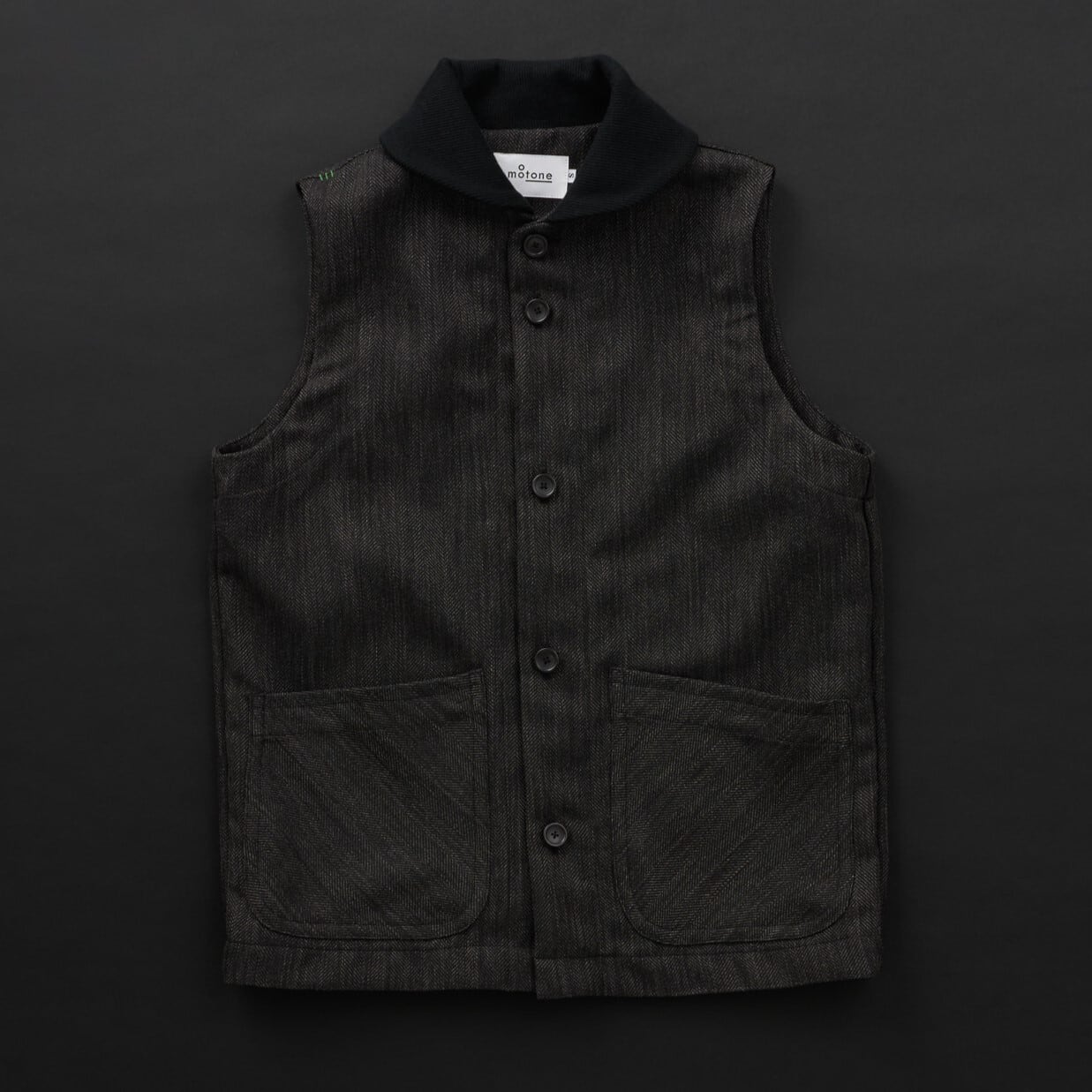 モートンで大人気のジャケット、ランバージャケットのベスト型です。パッチポケットはバイアスにしてアクセントにしました。