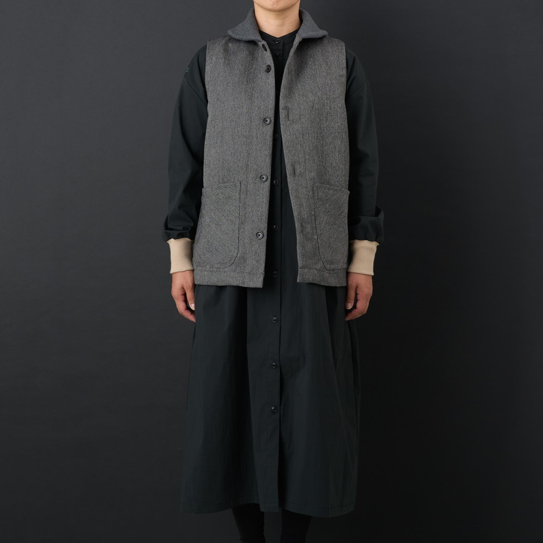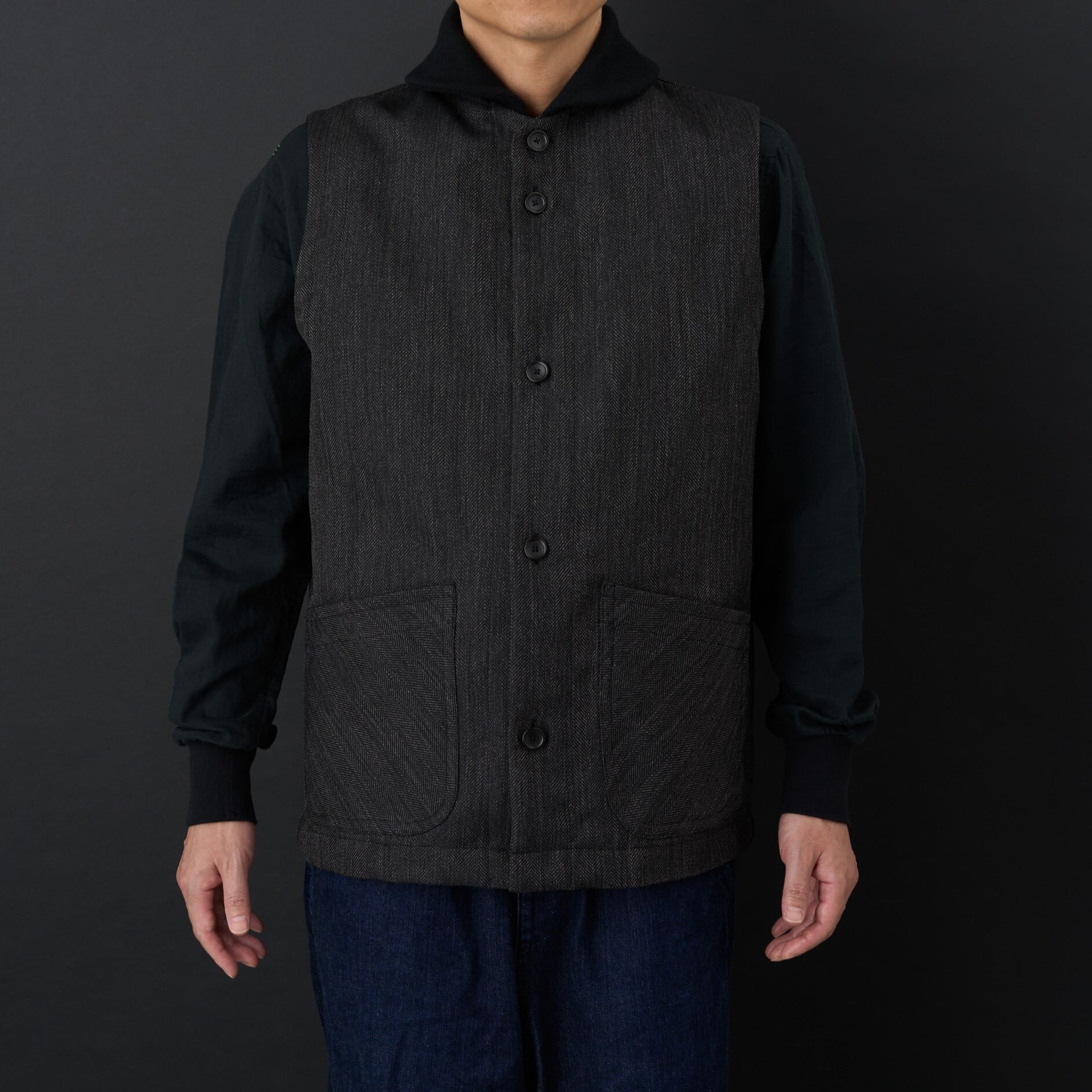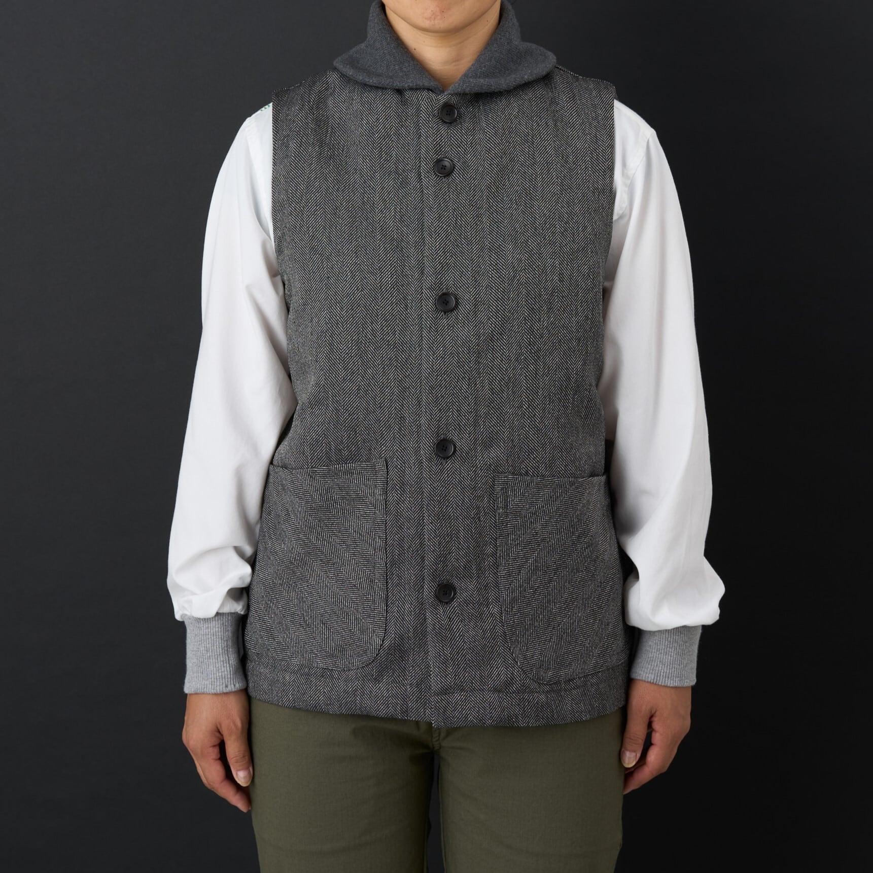 ウールライクなポリエステルのヘリンボーン生地でランバーベストを作りました。
