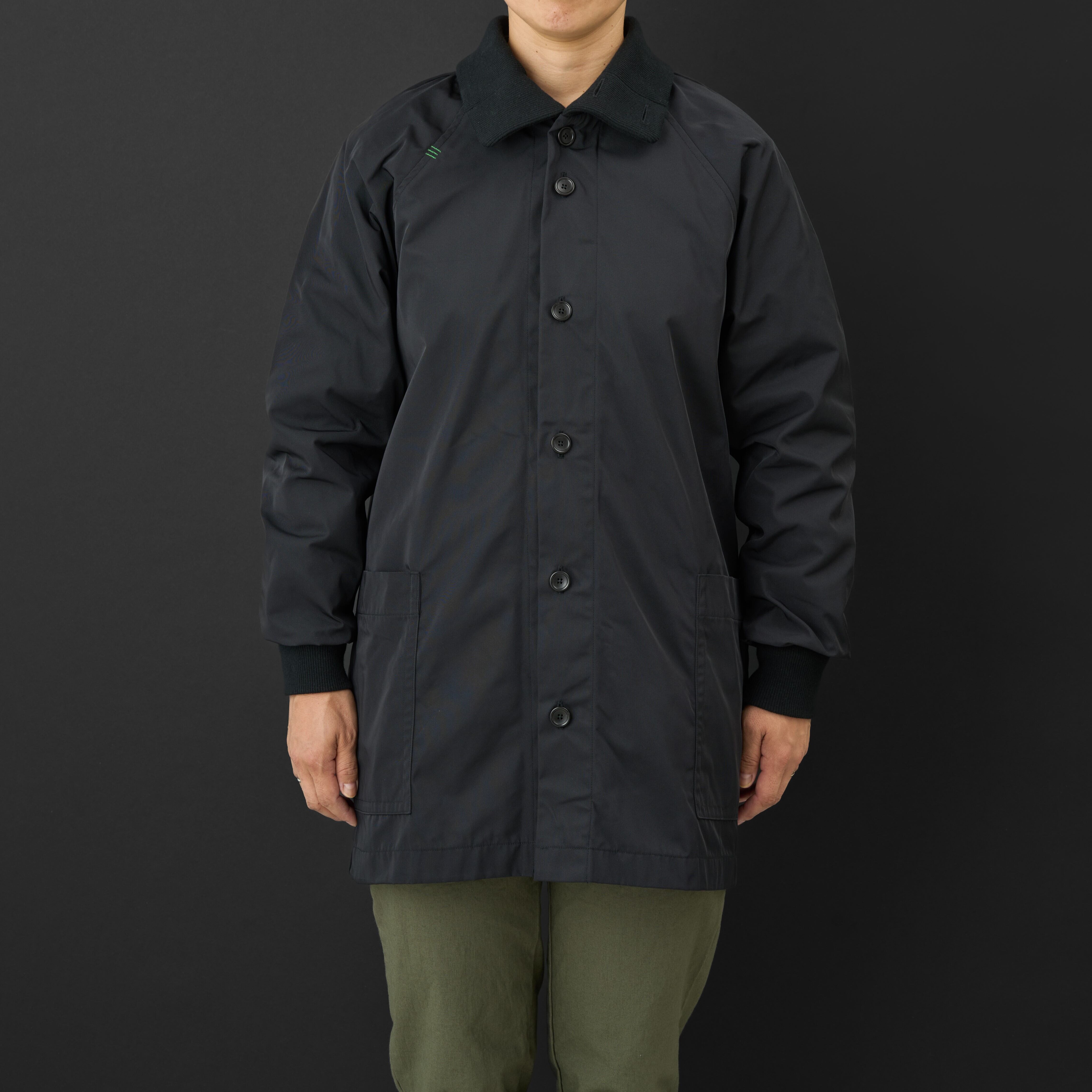 コニファー(針葉樹)をイメージしてAラインのミドル丈のジャケットを作りました。襟のボタンをとめてハイネックにしたり、とめずに開いたり、さまざまな着こなしをお楽しみください。生地は打ち込みが強いポリエステル生地で軽くて丈夫な生地です。形状記憶ですのでシワになりにくいのも特徴です。旅行や出張の時には丸めてリュックなどに入れて持ち運べるとても便利なアイテムです。インナーに薄いダウンジャケットなどと合わせて頂くと寒い時期も着ていただけます。