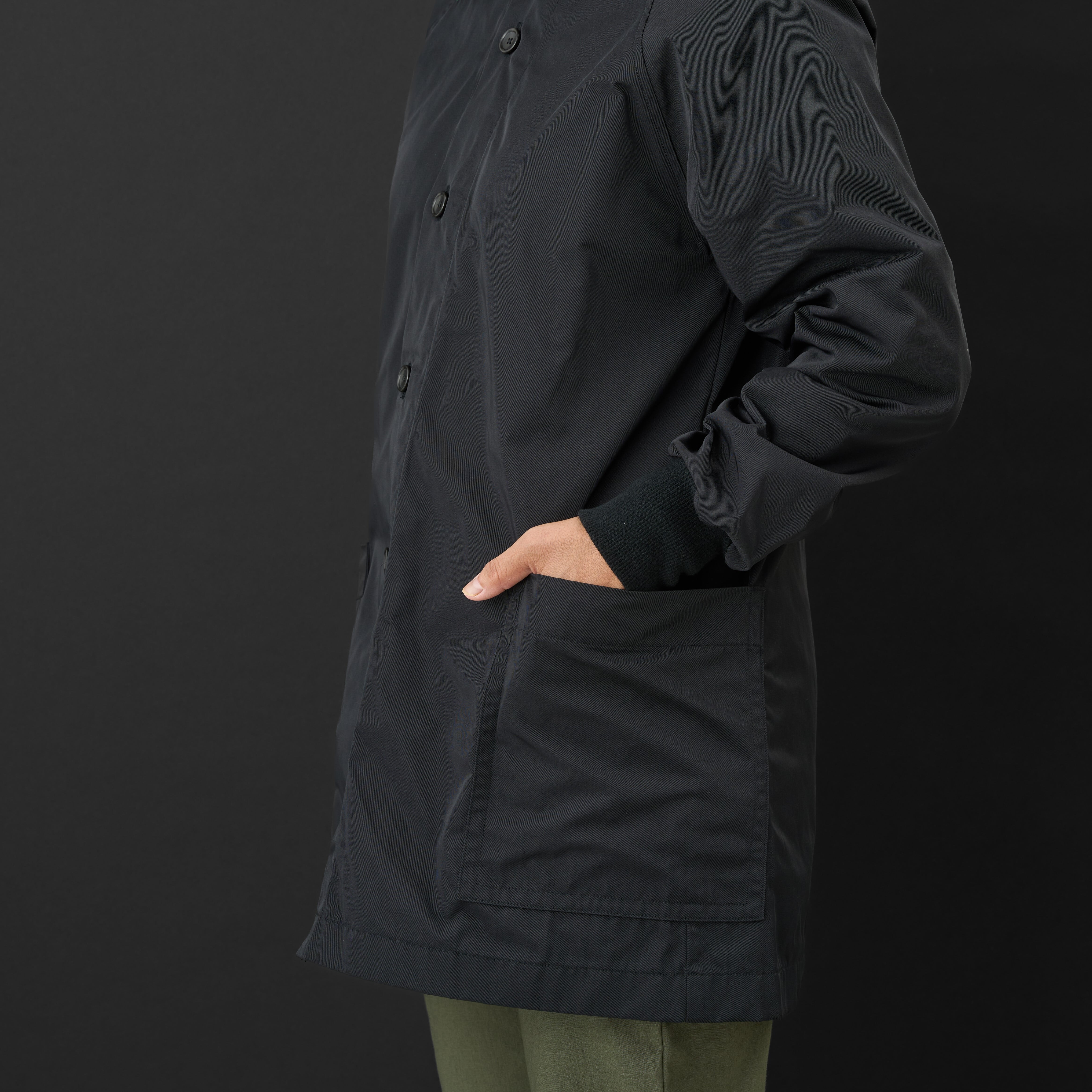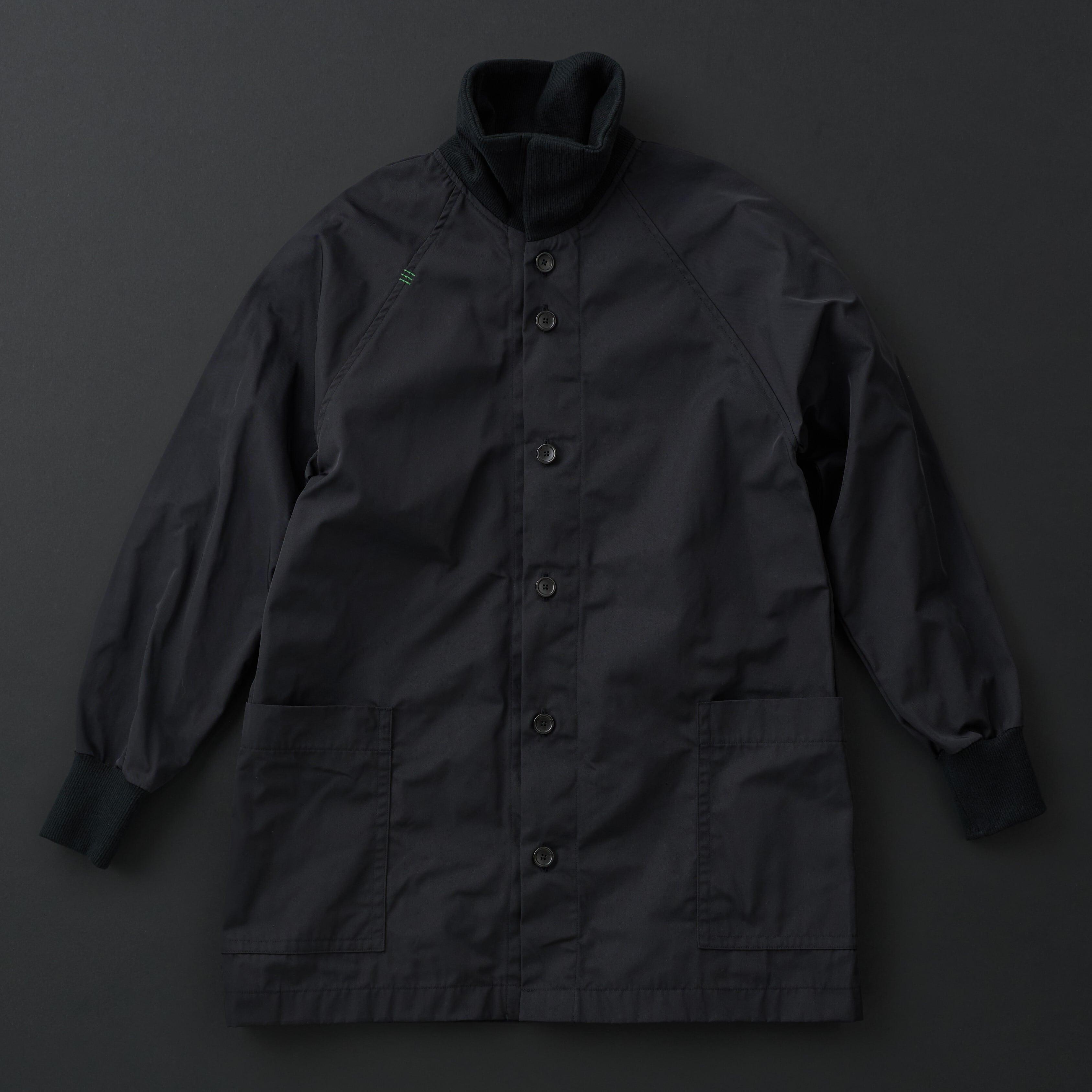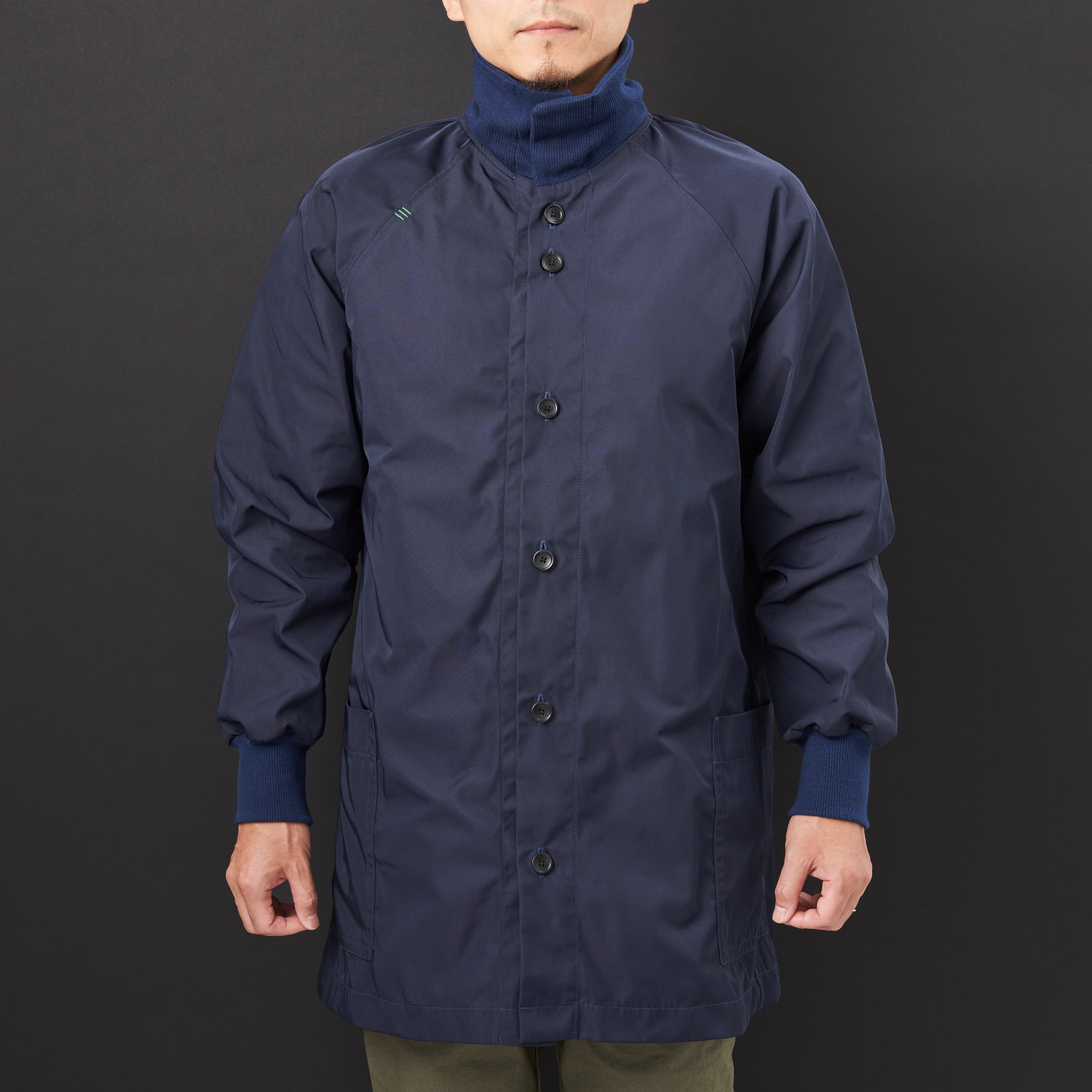 コニファー(針葉樹)をイメージしてAラインのミドル丈のジャケットを作りました。襟のボタンをとめてハイネックにしたり、とめずに開いたり、さまざまな着こなしをお楽しみください。生地は打ち込みが強いポリエステル生地で軽くて丈夫な生地です。形状記憶ですのでシワになりにくいのも特徴です。旅行や出張の時には丸めてリュックなどに入れて持ち運べるとても便利なアイテムです。インナーに薄いダウンジャケットなどと合わせて頂くと寒い時期も着ていただけます。